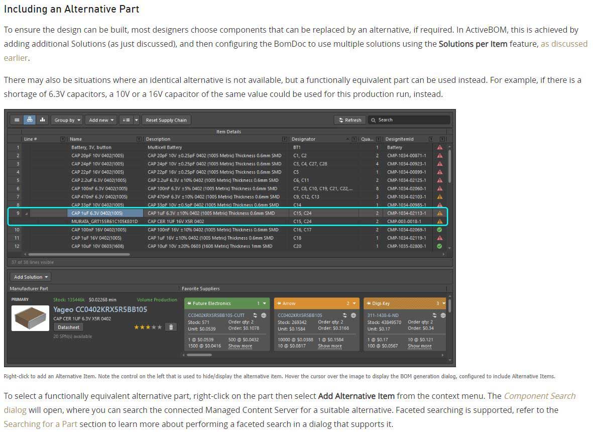 "To select a functionally equivalent alternative part, right-click on the part then select
