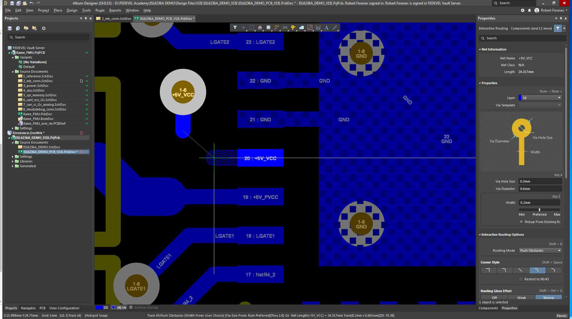 there is something called electric grid that is sometimes anoying when it is set too big.. then it will snap to electrical points a.k.a. pads. i believe default is 8mil.. jus tkeep that in any case..