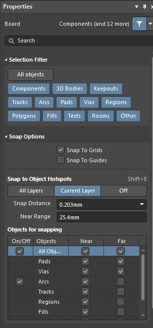 place components on a grid, but don't go overboard here... depending on the components one grid or the other might be better for quick placement.
