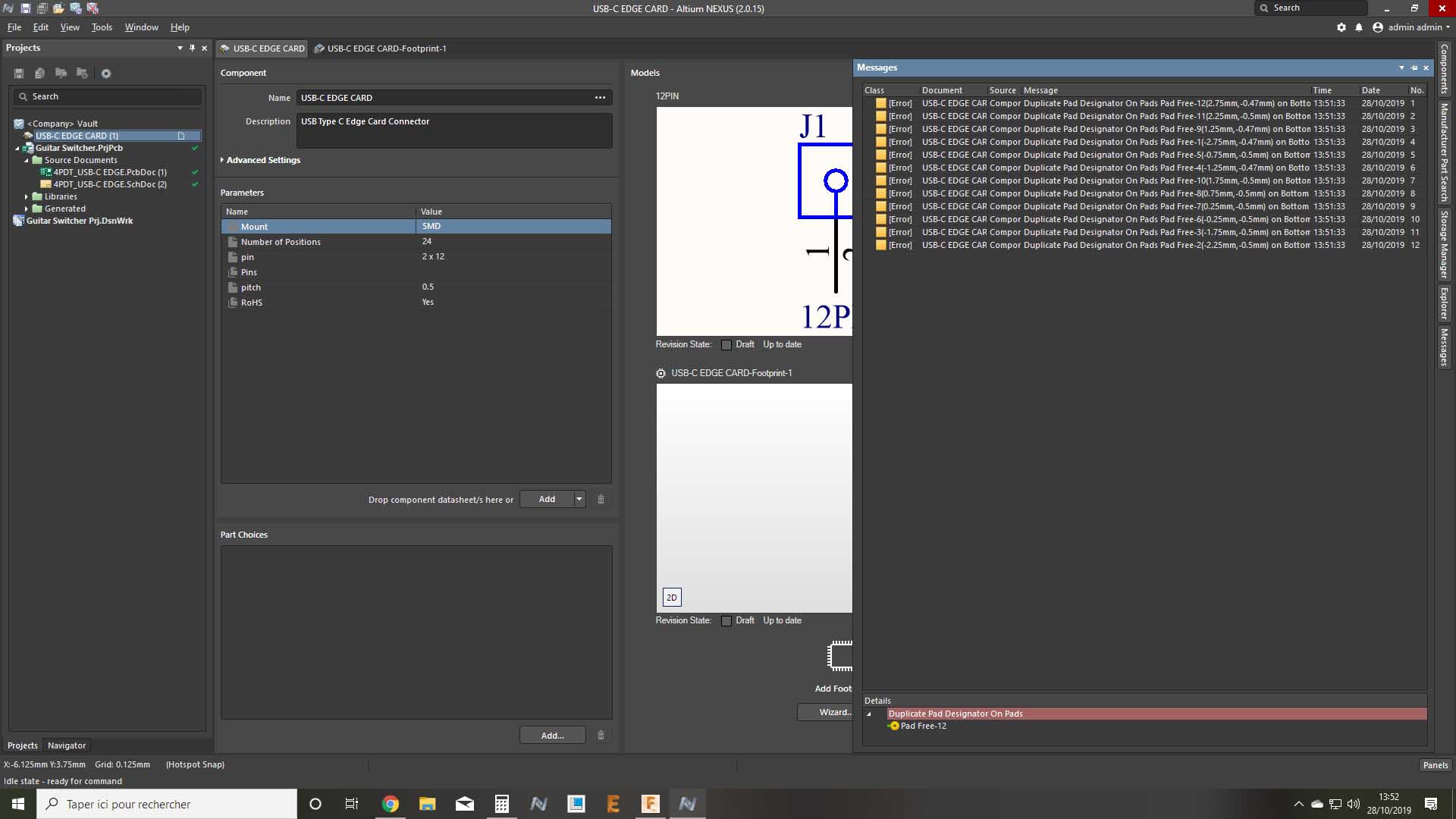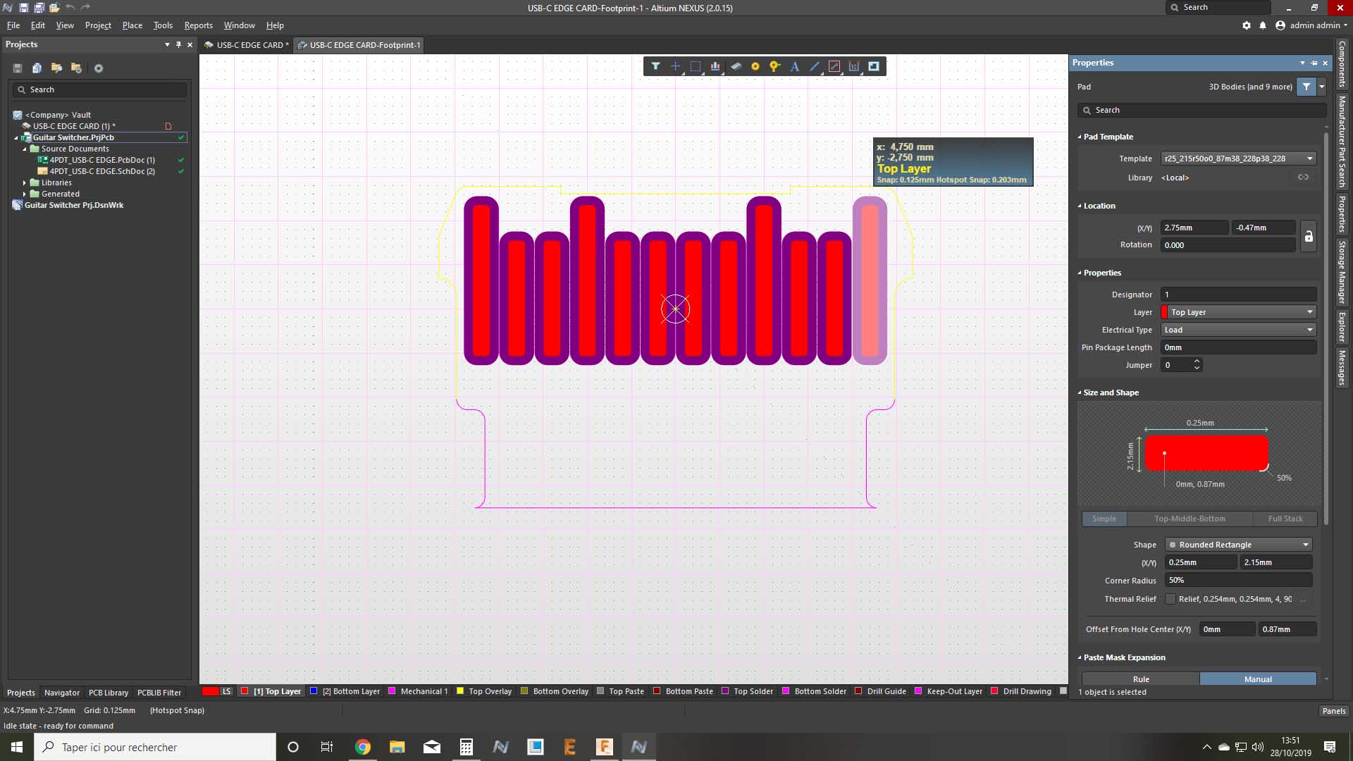so i want to make an USB C edge card connector, and thinked to create usb footprint pad only on one side (probably on top)to find other possibilities to do to clear properly this issue and solve multiple pad assignation problem.