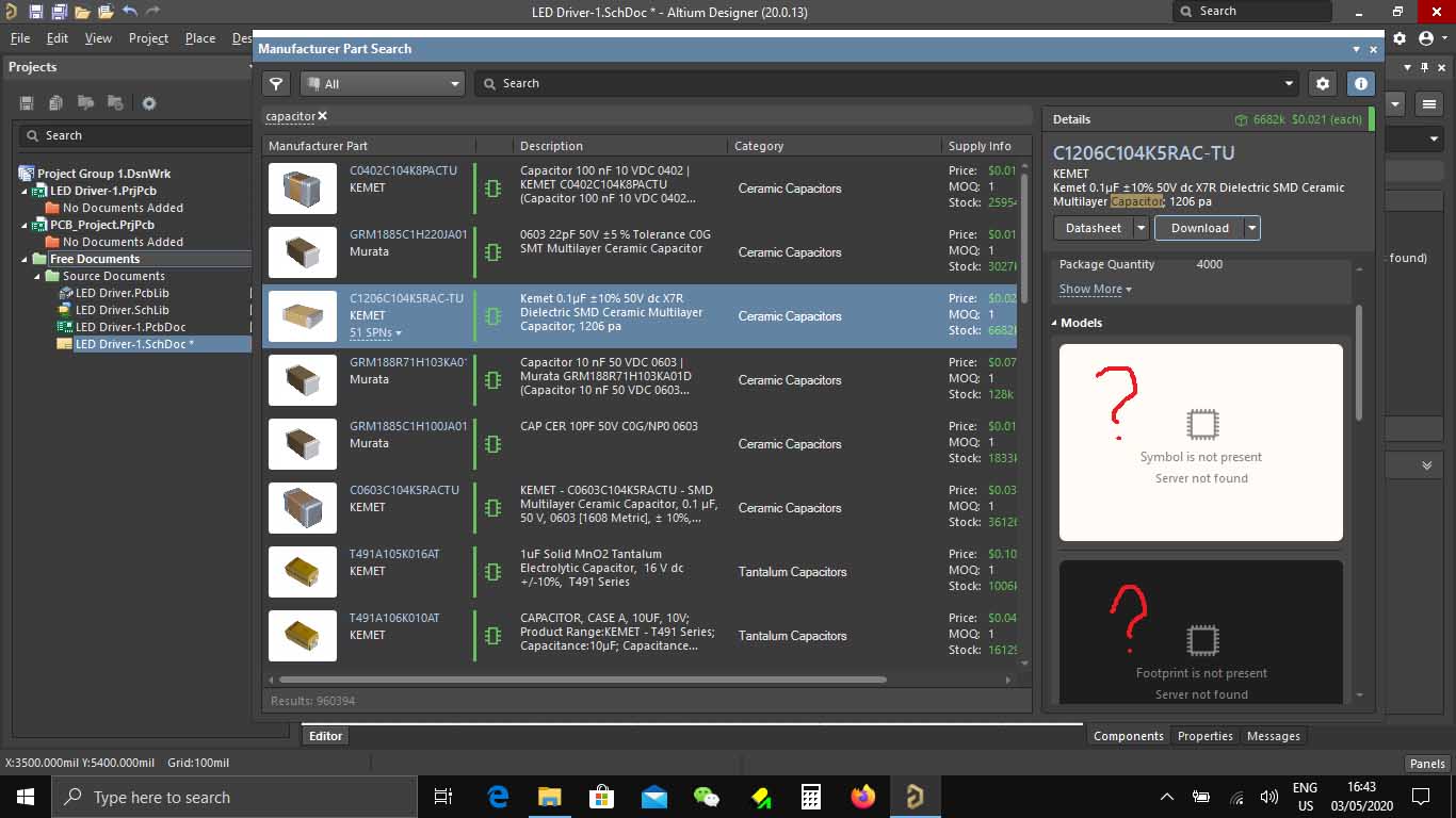 - many people are occasionally reporting this. Is it now working? Was it really a server error? PS: I think, for the components with green chip symbol, some models (schematic symbol, PCB footprint) should be available.