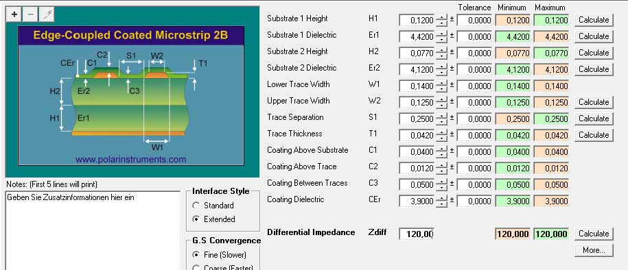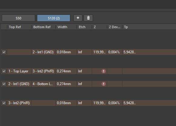 Seems OK with 50 Ohm impedance but always getting a very small track for 120 Ohm.