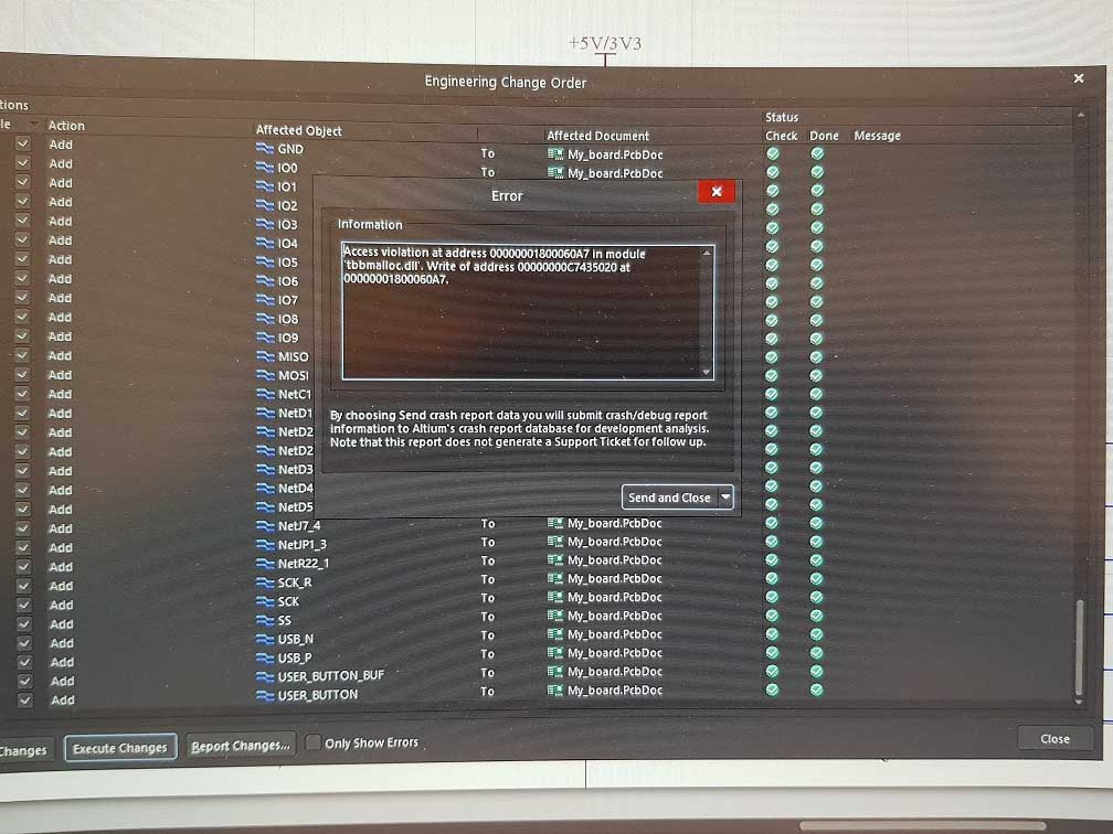 I attach a picture of the crash. The program freezes and I cannot even click on the "send and close" button.