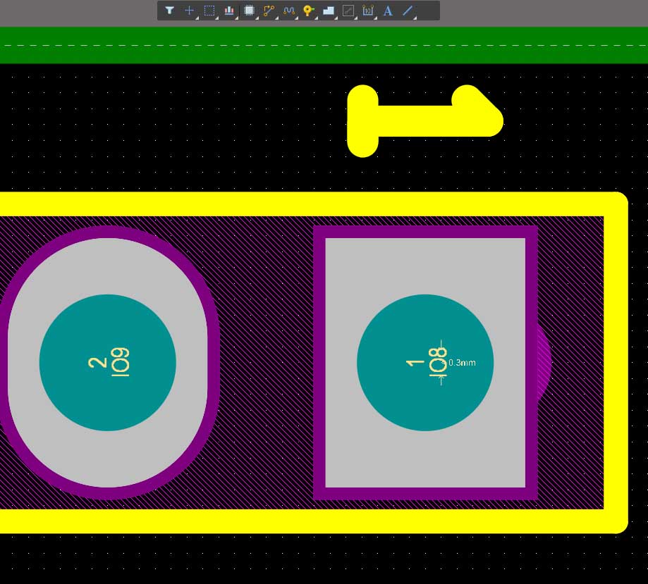 I attach the error, the image of the footprint of one of the headers with the error and the error shown as "< 0.3mm" (the min track width rule I've chosen) in the PCB after the error check.