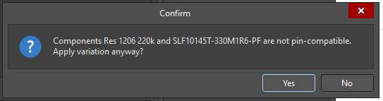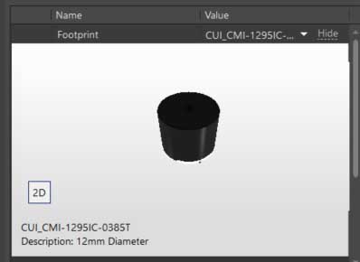This is my first post on here. I am trying to create a variant with an alternate part. I want the "base" part to be an on-board (through-hole) piezo, and the alternate part to be a 2-pin male connector. When I click on the piezo under the base variant, I can see the footprint - all is good there. When I switch over to the alternate part, I do not see a footprint - Altium says it is missing. I originally tried with a typical 2-pin connector schematic symbol, but I thought that maybe Altium did not like that. So I went ahead and made the variant symbol for the 2-pin connector the same as the symbol for the original speaker.
