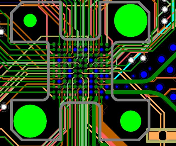 In this case you will need micro vias between L1 - L2 and L2 - L3. As already said, you might also need to go L3 - L4 if you need most of the signals on the 3rd row of pads (PD, HPD, REXT, etc). I think you might be alright without this though - so 2 micro via drill pairs in the best case.