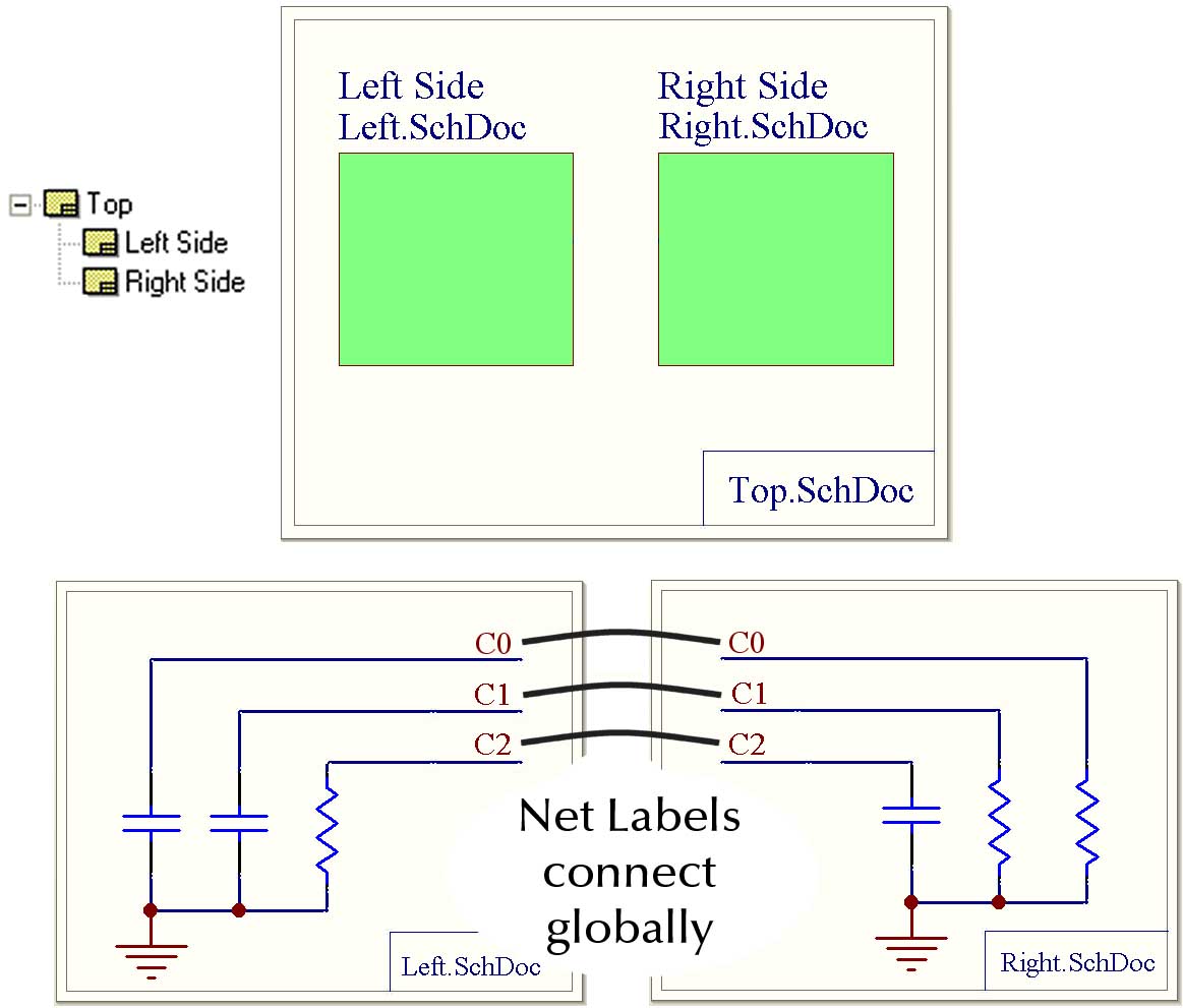 2. If you want to have just a visual hierarchy in the project, so that there is some sort of a logical structure, you can keep all nets to global, so that they connect across all the sheets. Then 2 nods will connect to each other automatically as long as they have the same net label.