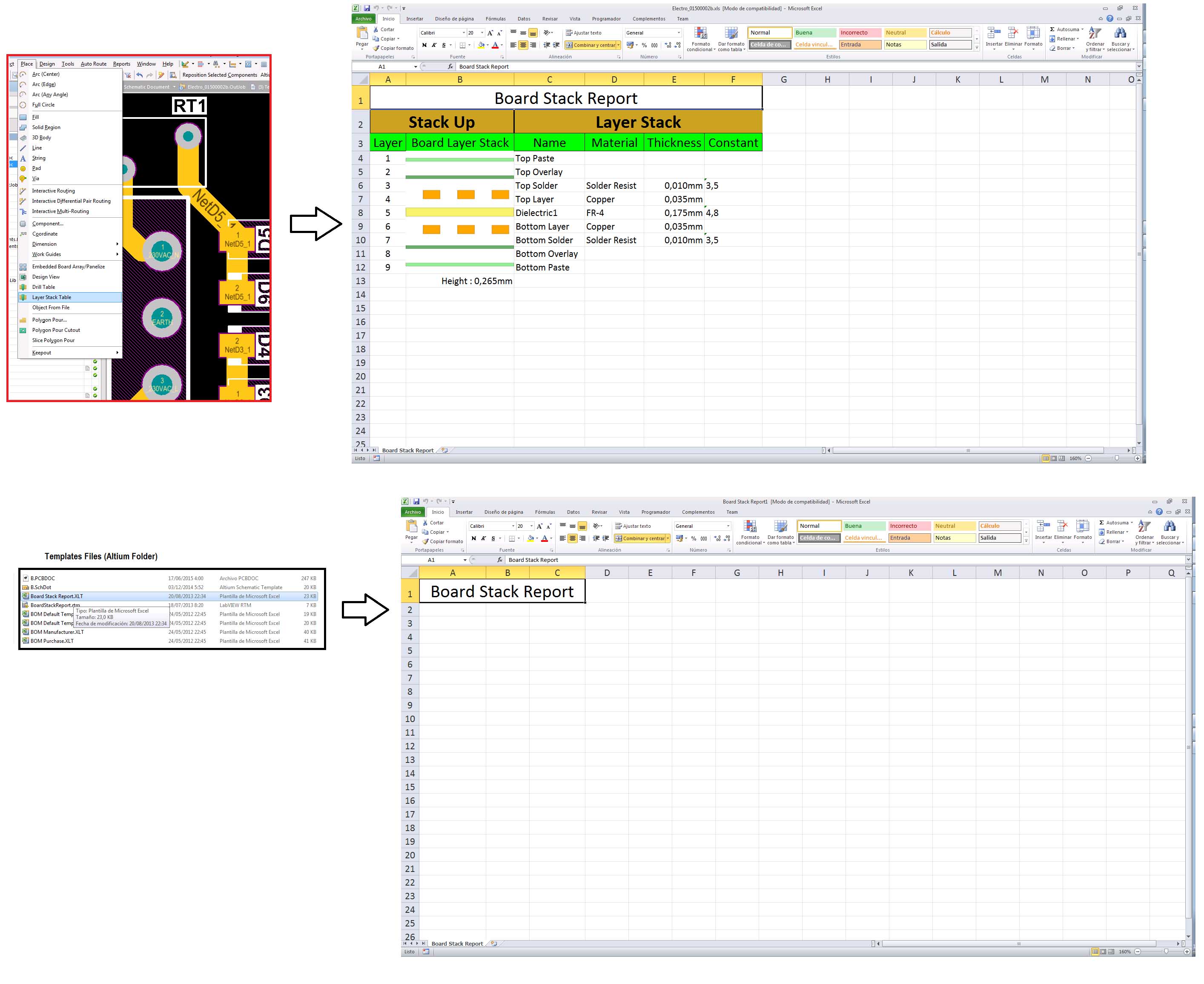 I've attached a screenshot. What I want to do is to modify the template file "Board Stack Report.XLT" (As it can be done with BOM templates), but when I open the file it just have a title and the rest is blank.