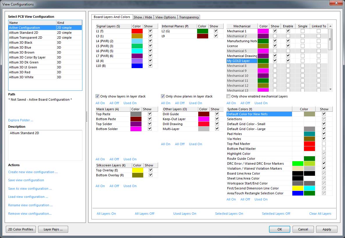 In my design, we need to have a chip on board for wire-bonding. Since wire-bonding requires gold on the pad, I need to somehow specify the area that needs to be covered with gold. As a result, I need to create an extra layer in Altium to show this is the area that needs to be covered with gold. I was wondering how we can add an arbitrary layer in Altium design. I'm using Altium design 10.