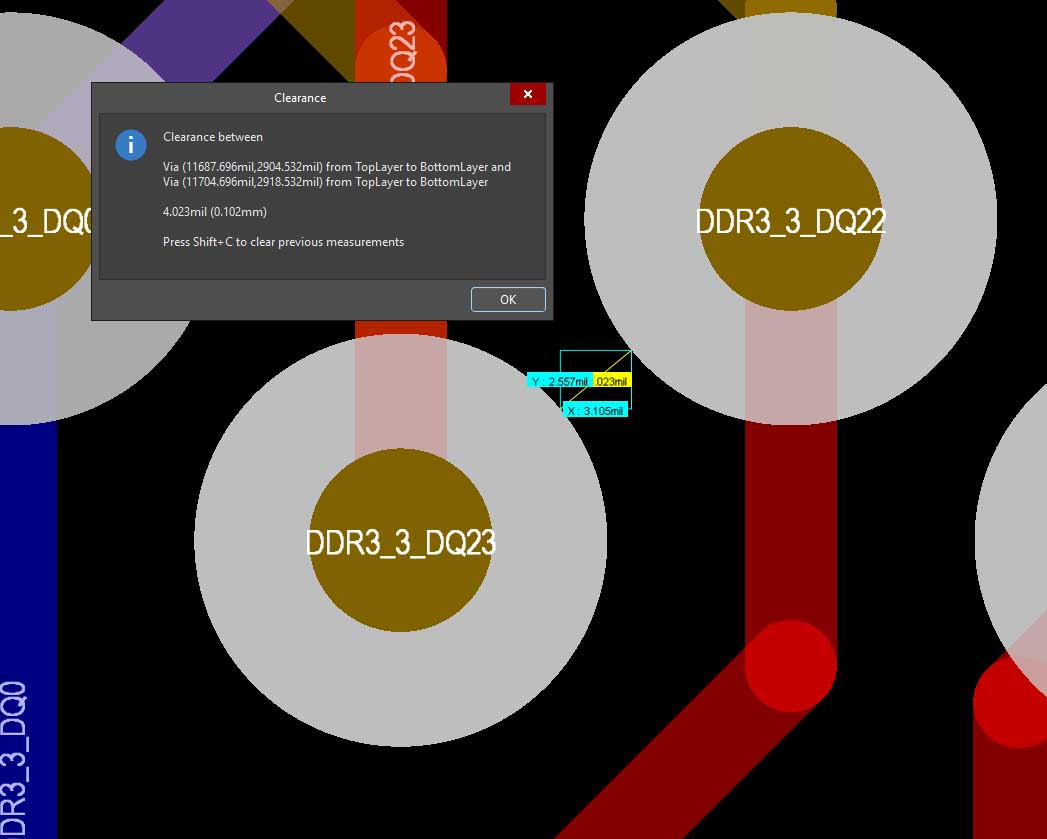 vias placement (0.1mm) clearance between vias