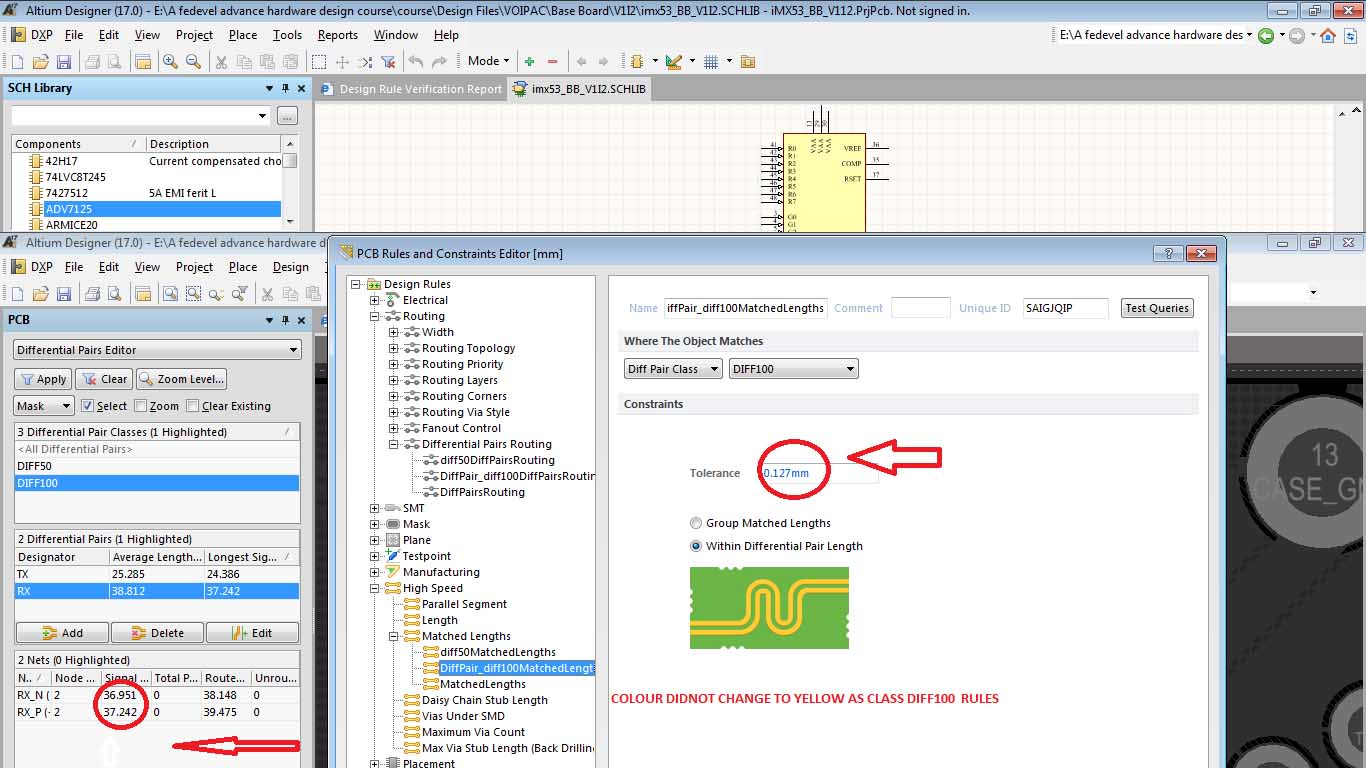 I DEFINE CLASS DIFFERENTIAL PAIR DIFF100 WITH LENGTH .127MM BUT ON LEFT SIDE INSIDE NETS DIFFERENCE BETWEEN PAIRS MORE THAN .127MM . DIDNOT SHOW WARNING YELLOW COLOUR PLEASE REPLY IF ANYONE KNOWS THANKS