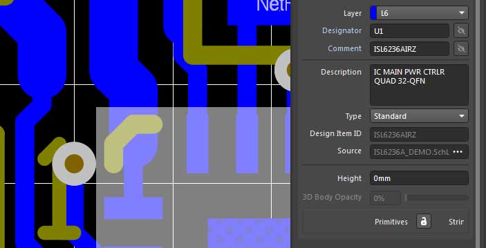 Any footprint I create always includes an overlay dot to indicate pin 1. Sometimes, depending on the placement of other nearby components, the location of the dot is not always clear. After placing the component on the PCB, I want to be able to manually move the dot without modifying the library. The attached image shows an example footprint. I added various types of overlay items (full circle, fill, solid region, line, text). The text items are the only items that can be moved once placing on the PCB. I cannot even select the other items. I made sure I don't have any selection filter. Is there a way to move the other objects? Particularly the full circle. The only work around I can think of is to make the "dot" a text item with the letter "o" and then use a large stroke size to fill it in. Is there a better way?
