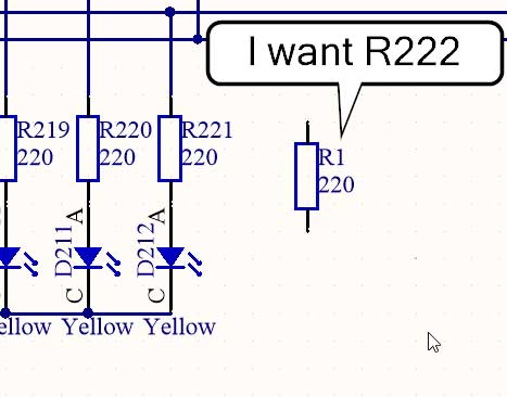 other option is to use " place component" and fill in you start number in your case R222 then it will continu after that wiith R223 R224 etc..