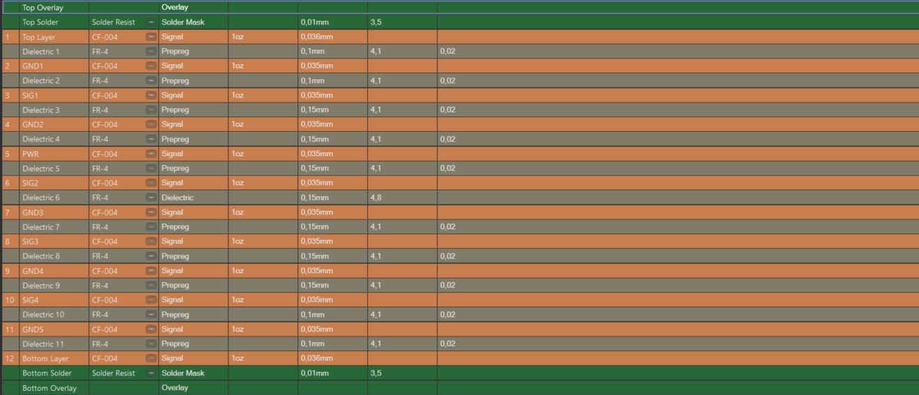 Hi everyone. I want to change my layer stackup in order to match impedances. You can see my stackup in the attachment. I want to have GND layers as plane layer and the others as signal. But when I switch SIG2 layer's type to signal GND3 automatically updates to signal and vice versa. I want to adjust SIG2's type as signal and GND3's type as plane. Is there a way to do that?