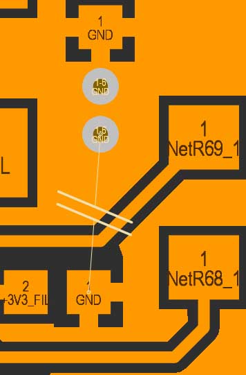 The polygon it's tied to GND as you can see above the pic, but the other resistor also it's tied to gnd through copper pour.