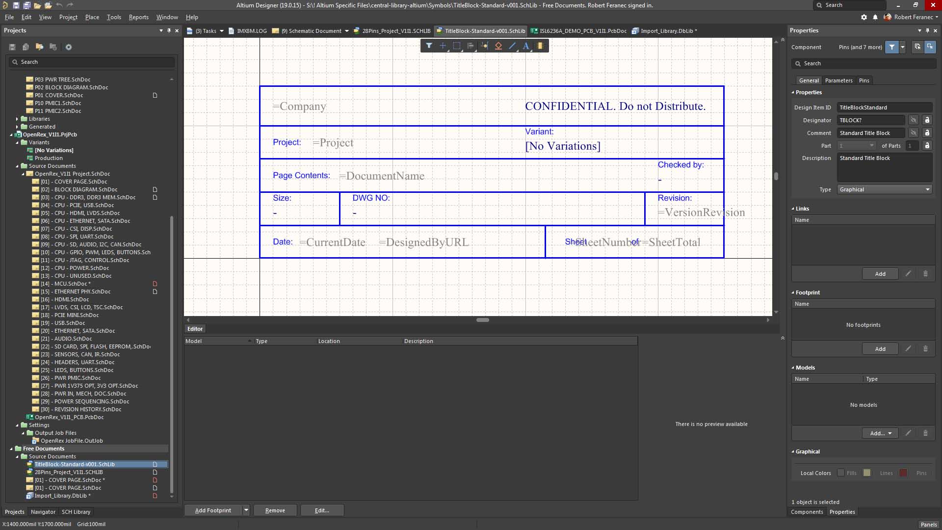 Schematic title block editing
