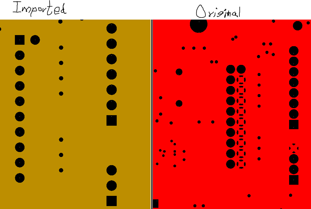 For example, the clearance distance between two polygons is much less than what was in the original design and they are poured throughout in between the BGA and pads. I am attaching the picture of top layer gerbers (Red coloured is original. Blue is imported)