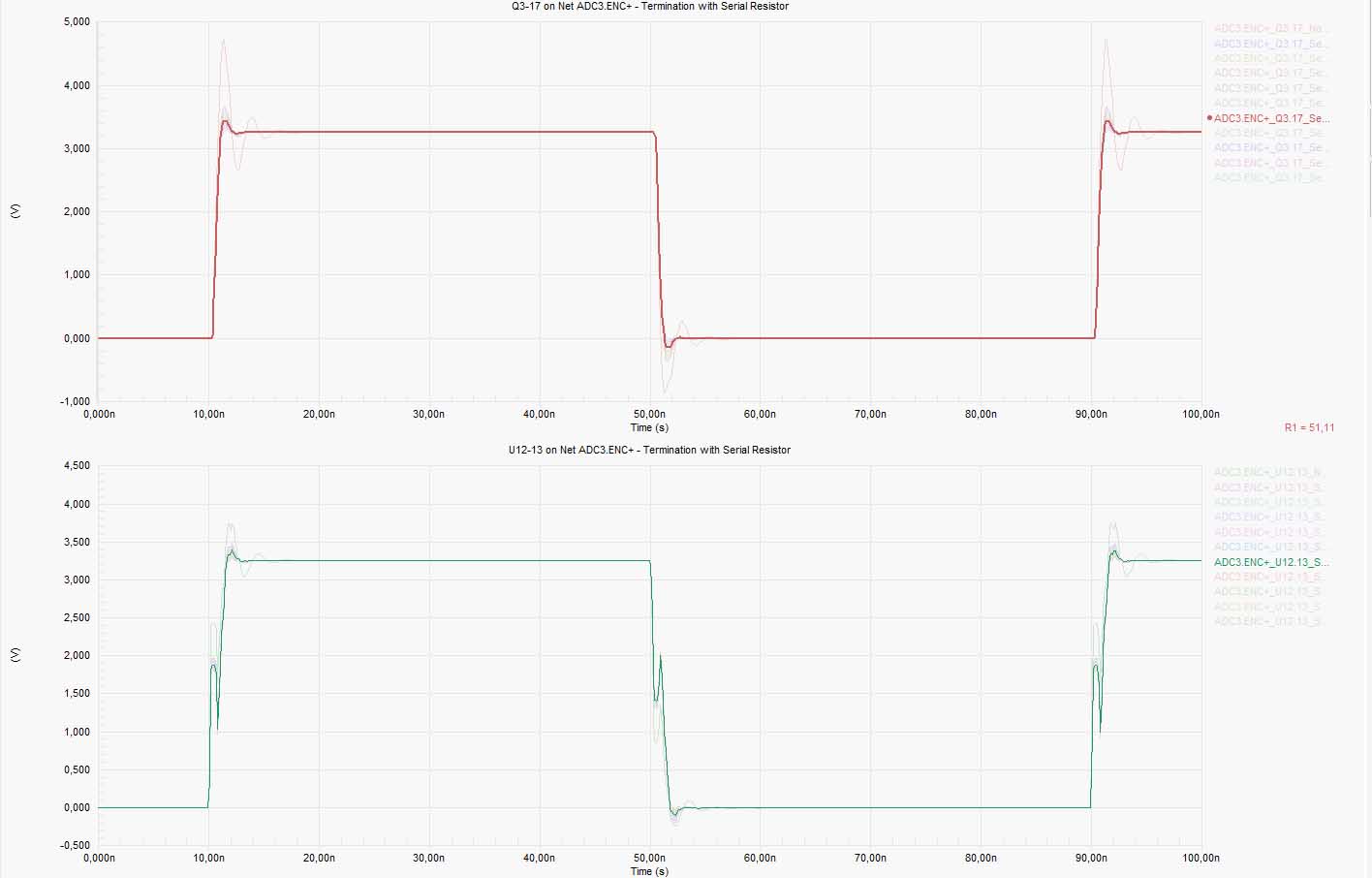 Back to the subject, I'm using Altium SI for simulate it, but gives me a confusing results (at least for me), because the DS of LMK00105 says: Rs = Zo - Ro, but I'm confused because transmission line Zo = 50R and output impedance Ro=50R gives me 0R, however without termination the signal has huge overvoltage, and with series termination of 50R gives me "better result" see attached picture, but as you can see in the middle of the signal rises, a step occurs.