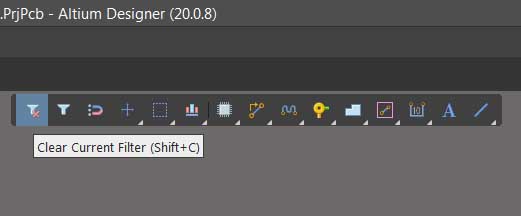 from the menu: View-> Toolbars -> Customize, a dialog "Customizing PCB Editor" will appear and floating PCB toolbar turns to normal toolbar and so editable, right-click on PCB and select "Clear Filter", hold your click, it will move the command and place it in a location in toolbar, an icon will be dragged and positioned, then close the "Customizing PCB Editor" dialog, your floating menu should return by your added new button,