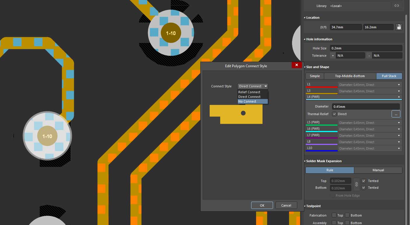 - or if it is polygon, you can set specific connection type on specific layer