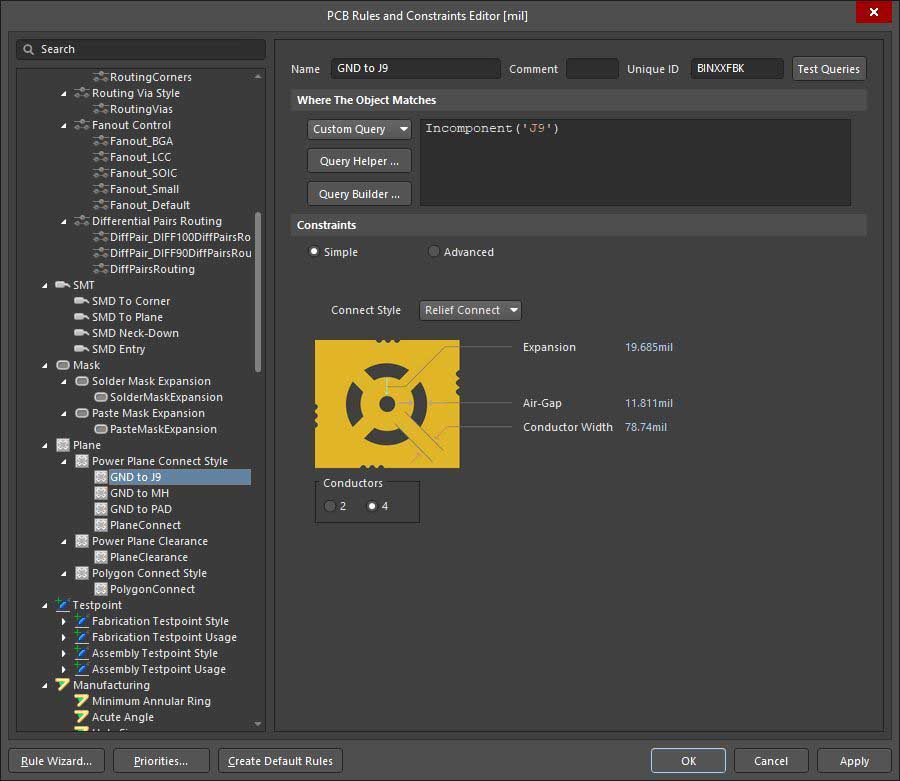 robertferanecYou can set rules for Power Plane Connect Style and for Polygon Connect Style. Here is an example for a component, but you can do the same for net or even for specific polygon: