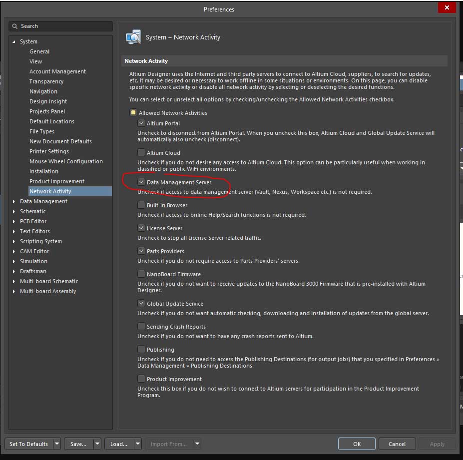 First, go to System preferences -> System -> Network Activity -> Data Management Server and check that. It has to be enabled: