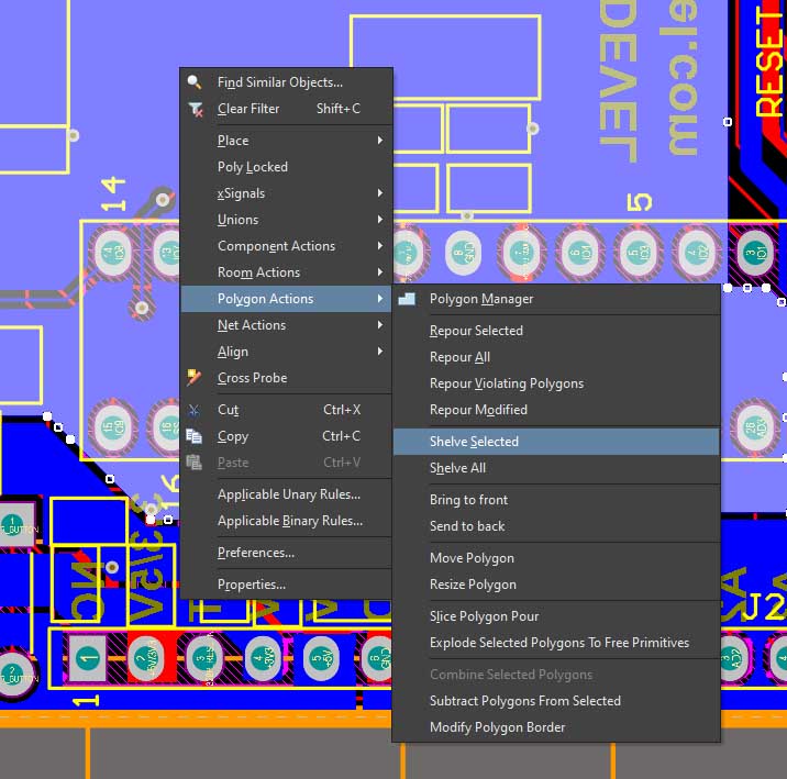 How do you remove a polygon pour if you do not want to see it, and you need to make changes to routing before re-flooding