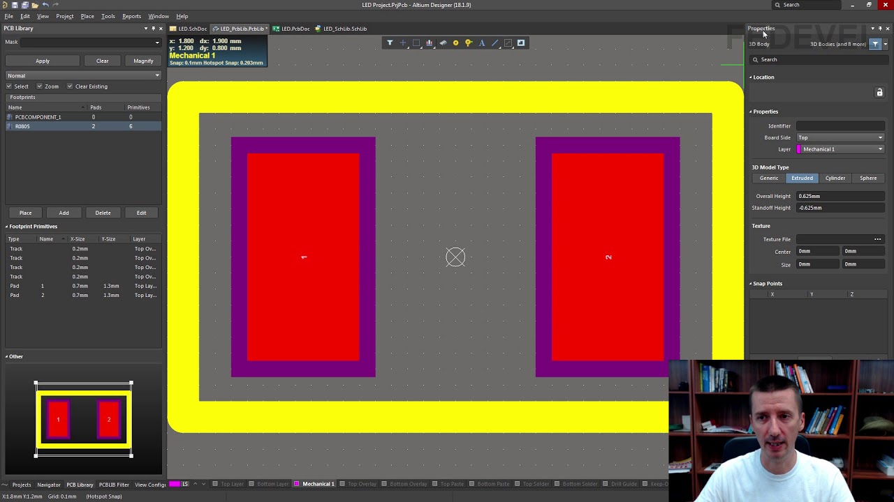 Creating Footprints, Adding 3D models, Updating Schematic Symbols, Annotating, SchematicStep-by-Step video for everyone starting with Altium Designer PCB Lay...