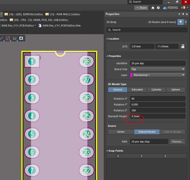 When I use the command Tools --> 3D Body Placement --> Align Face with Board, Altium won't allow aligning face with board for the cylinder since it is round