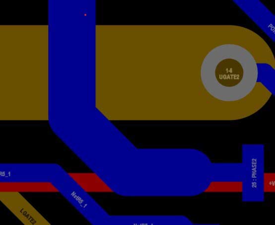 In the 'Altium Essentials' course PHASE2 track is widened to allow for high currents. However, at U1-25 which is the source of PHASE2, the fan-out width is less, 0.2mm.