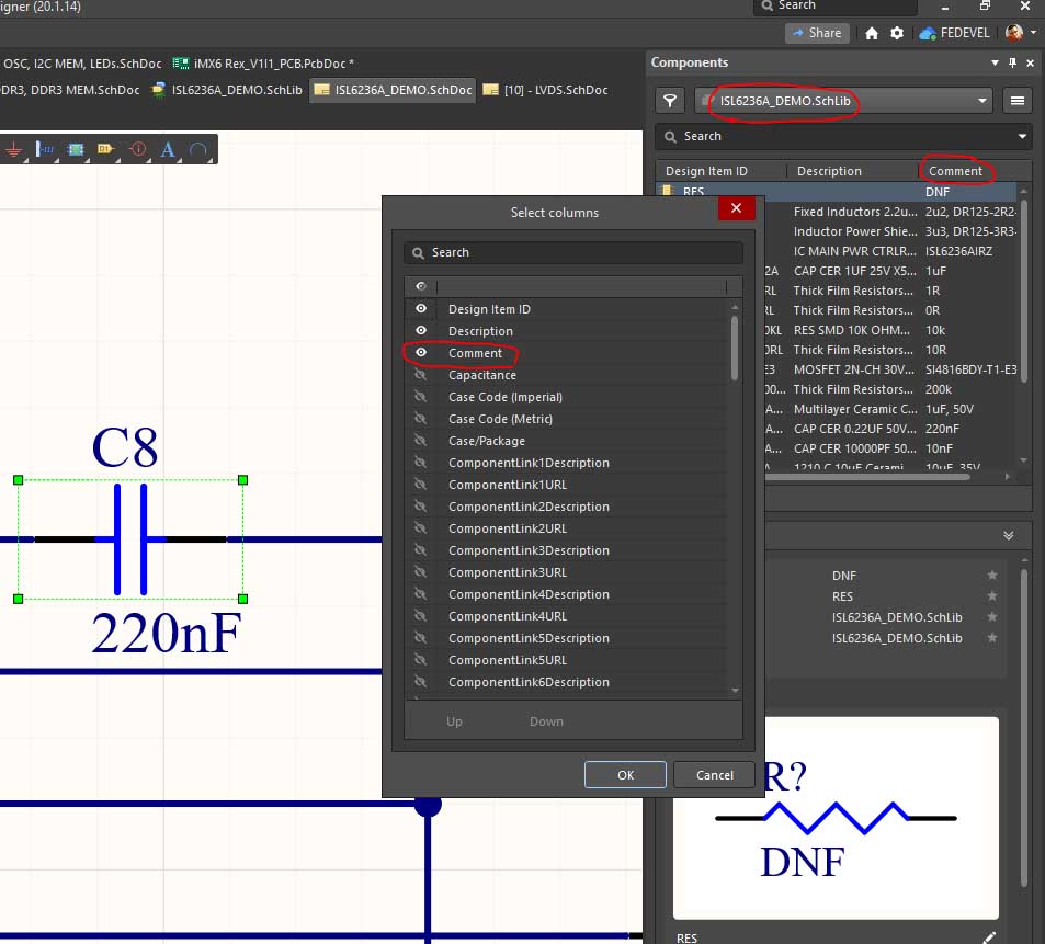 Does anyone know how to turn on the comments column in the SCH library panel? I have two columns. Design item ID and Description. I would like to have the comments column show up as that is where I put my internal part number reference. Altium tech support after three days, two phone calls from the wrong dept, numerous emails and I cannot get any response from them. Sorry, venting a bit. Subscriptions, cost and everything else but zero help.