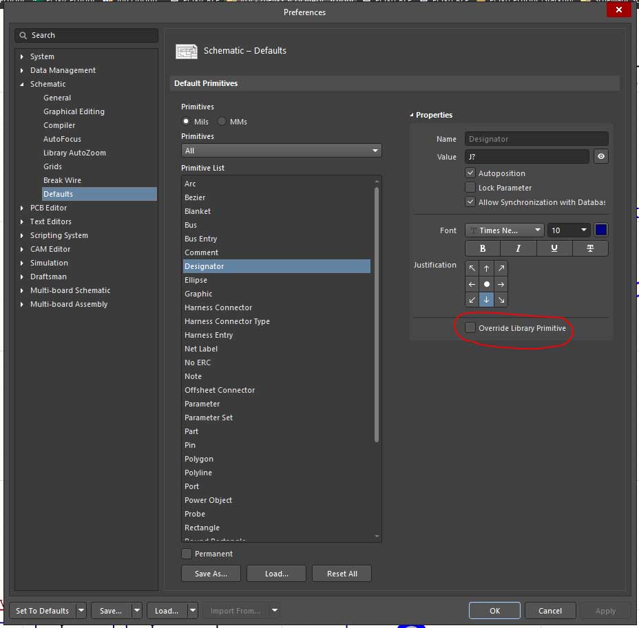 Hi all,I took some time and played with the Preferences page. I tried Designator, Comment (it shows the company number that is not useful) the parameter tab, the part, and other tabs and nothing changed this from happening. The libraries are made by corporation. Better people than me have tried to change them with out any success.