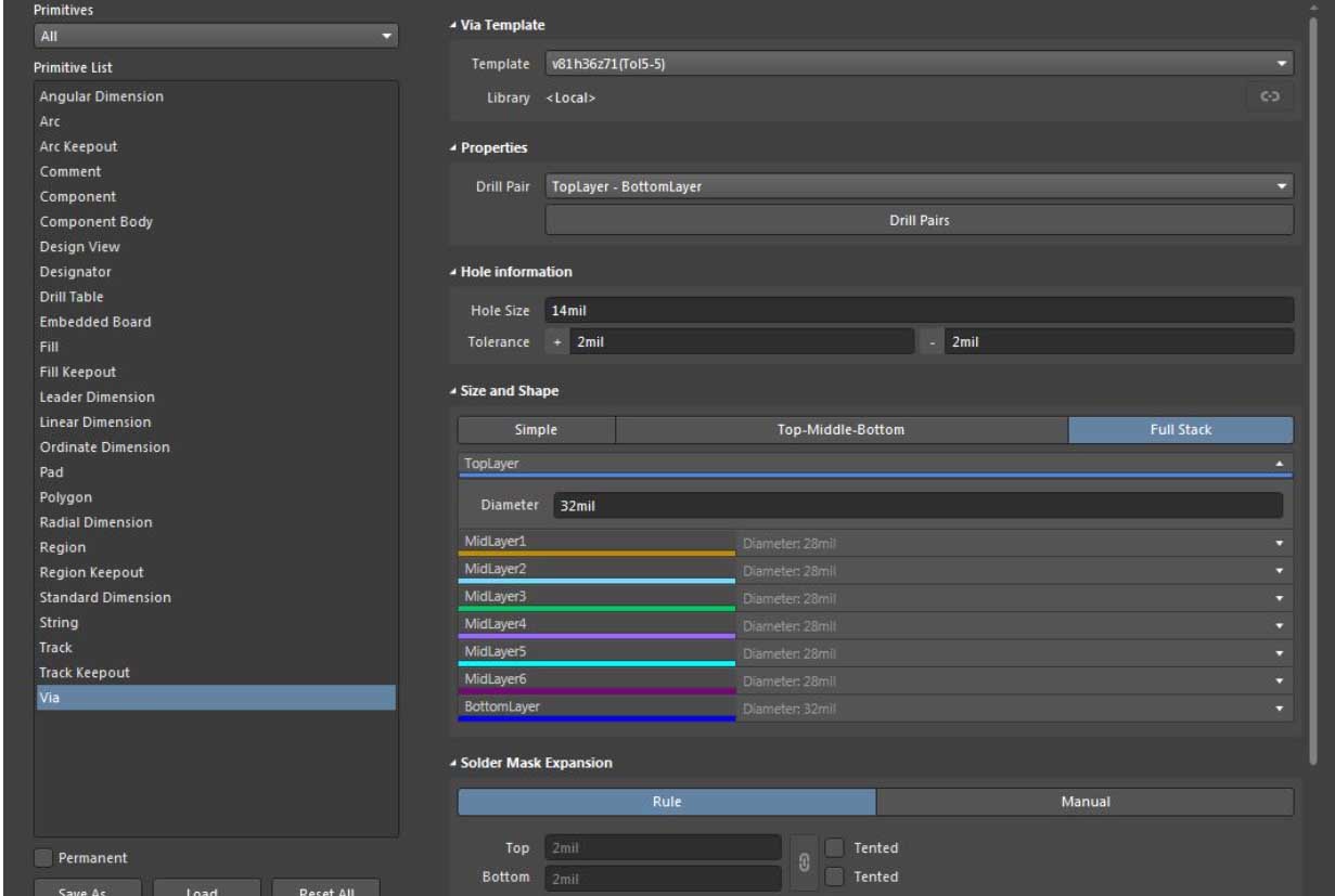 When Through hole vias are manufactured, basically you take your PCB with multiple layers, they drill through the whole PCB and put copper inside of the hole (this process is called plating). And when you put copper inside a through hole via, this copper will connect any layer in your stackup. So, when you use a through hole via, you do not specify what layers you would like to connect, you just specify it goes from the TOP to the BOTTOM Layer.
