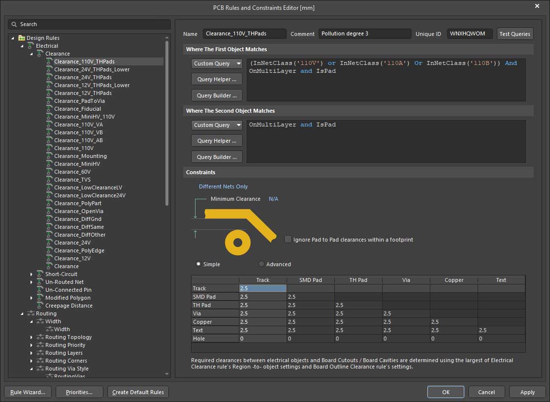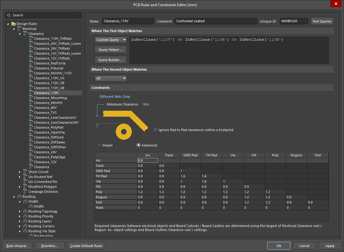 @Tom Yunghans So yes, in the example above it is purely a pad to pad clearance for 110V nets.