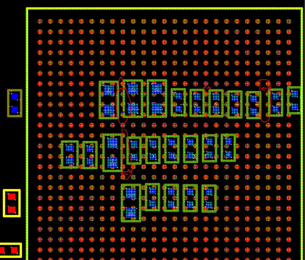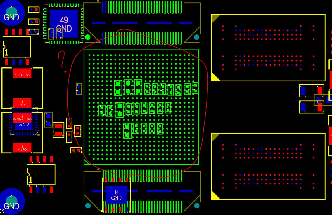To add to my previous question - what does this green highlight mean for the processor area inside the circle ? Rest of the board is red, blue and yellow.