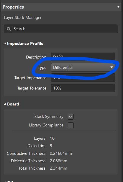 In altium when calculating your impedances don't forget to set the correct type, single ended or differential