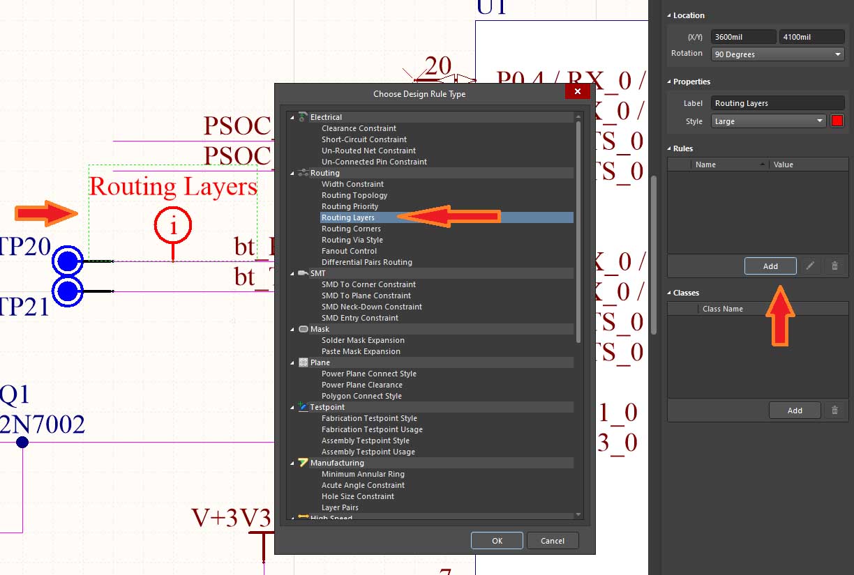 I am trying to limit the layers to be routed in a net from schematics. I used a Parameter I named "Routing Layers" (See image 1).