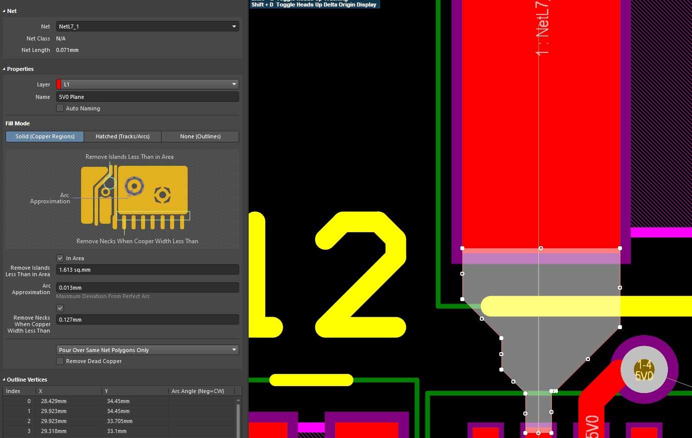 The polygon net is set to the same net name.