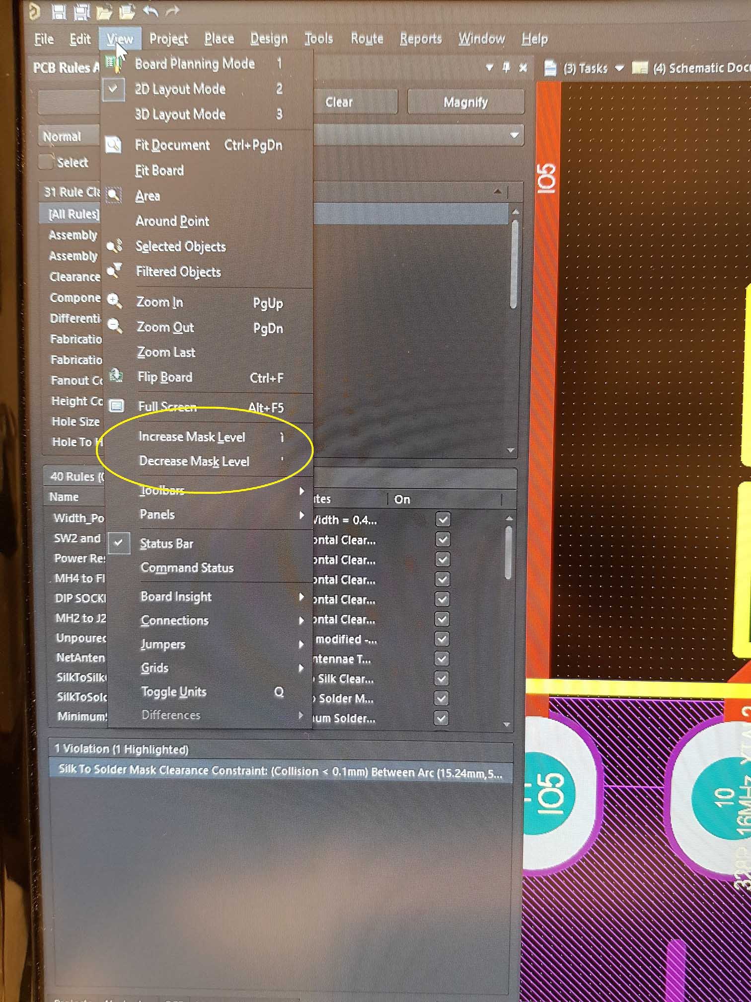I found now that if you have troubles with this masking mode you can disable it. Go to Tools - Preferences - PCB Editor - Display. There uncheck "Apply Mask During Interactive Routing".