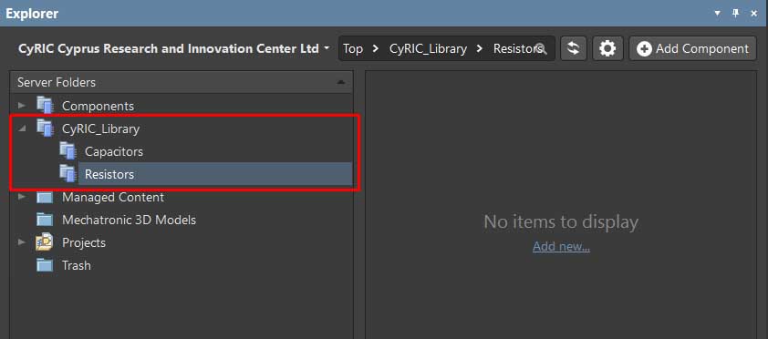 I have created a new folder "CyRIC_Library" and two subfolders "Capacitors" and "Resistors".
