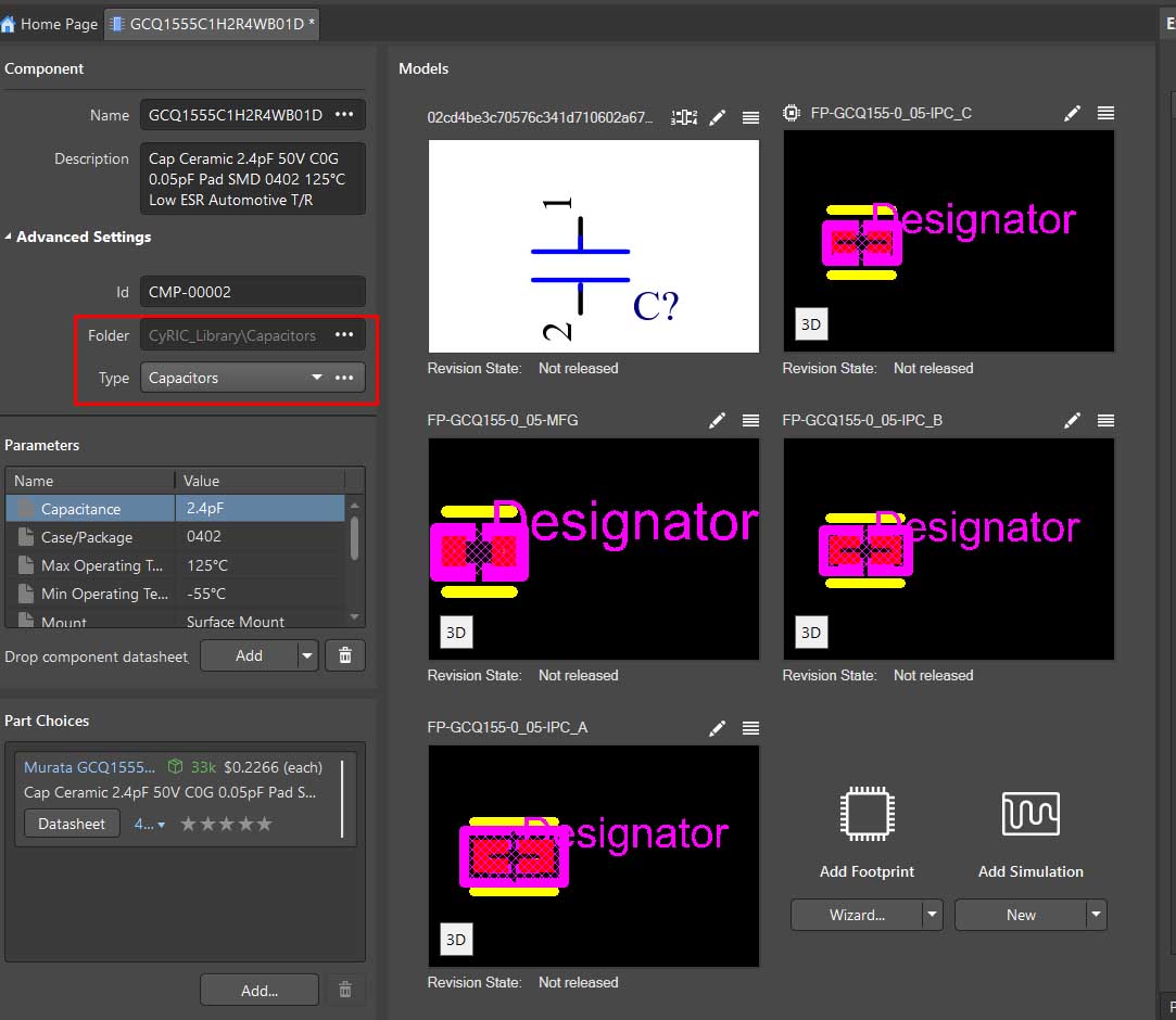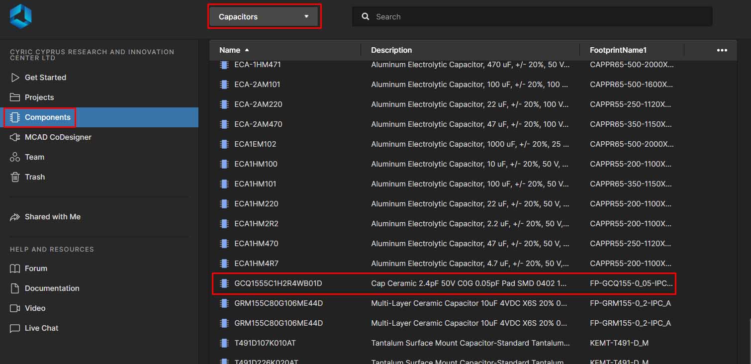 However when I select "add new..." and I add a new component from the Octopart Library, under the Cyric_Library\Capacitors directory and selecting type "Capacitors", this new component is stored in Altium 365 workspace under the Components section in "Capacitors" category as shown from the figures below. I mean, I do not see the Cyric_Library directory in Altium 365.. I shoudn't have created this directory?