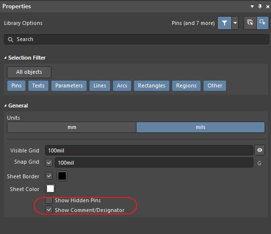 I want to show the 'Designator’ in schematic library,is anyone know how to set?