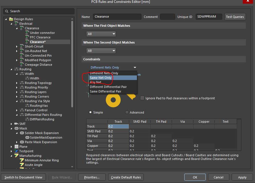 Is there a way for Altium to detect same-net spacing that is some non-zero value, but under 4 mils?