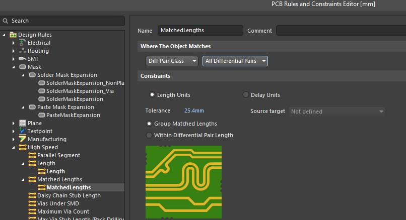 I set up a tolerance of 2.54 mm ("Group Matched Lengths").