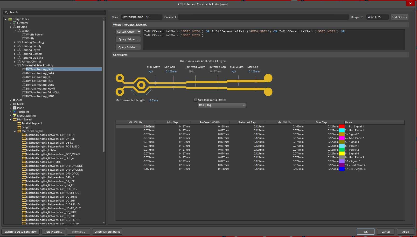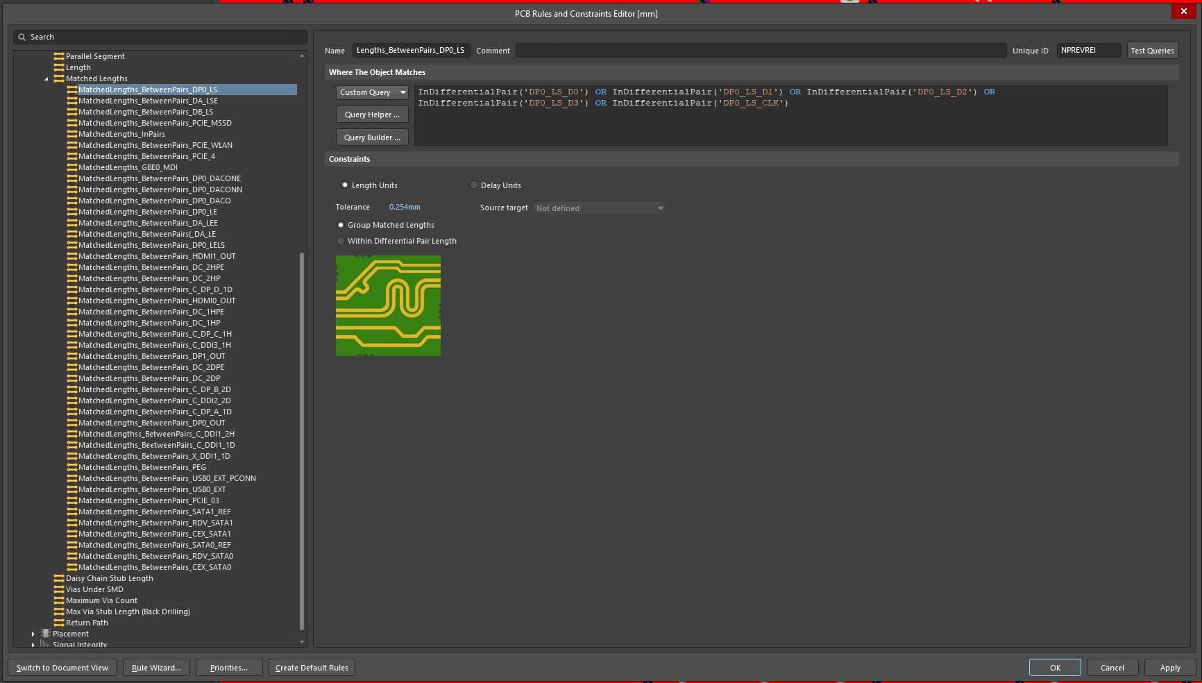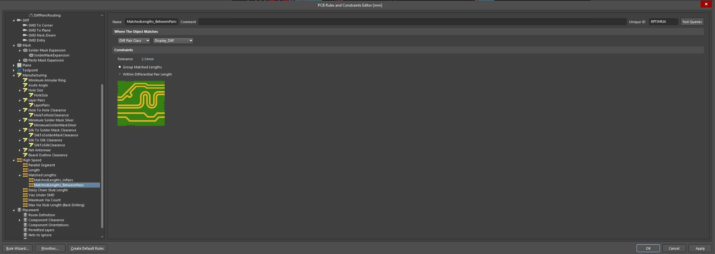 While entering the different rules for Length Matching Between Pairs, I started entering this BetweenPairs rule "HDMI0_OUT" pointing to all differential pairs.