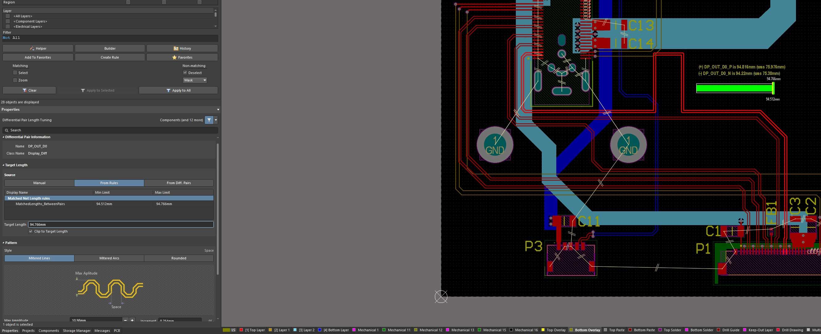 I created a rule: MatchedLengths_BetweenPairs and applied it to Diff Pair Class > Display_Diff.