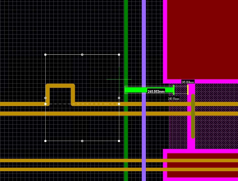 My first question: with this process positive and negative lanes match in length. But the gap between both doesn't follow the differential pair routing rule, meaning it doesn't follow differential impedance. Can we do better ?
