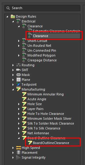 Define a rule under Manufacturing -> Board Outline Clerance or though the clerance rule under Electrical -> Clerance?