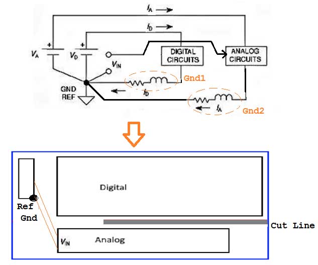 If the analog part must measure a voltage -VIN- as in Fig1 , then connect the Analog Circuit back