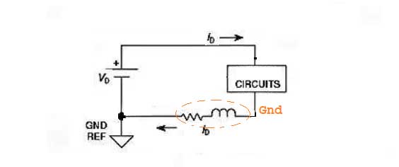 We agree that GND plane can be seen as a Resistence in serie with a Inductor ,as shown in the attach